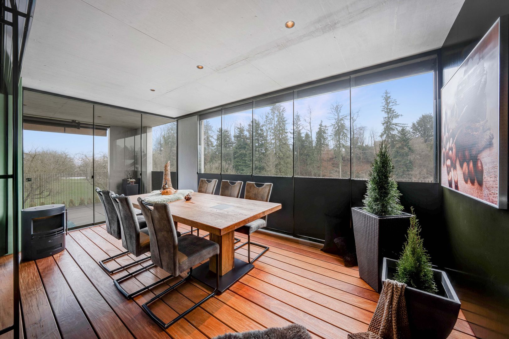 - Wintergarten mit edlem Naturhartholzboden und Abdichtbürsten zwischen den Glasscheiben