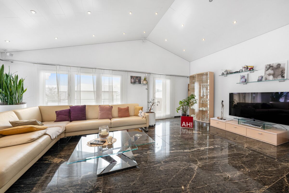 - heller, geräumiger Wohn-/Essbereich mit Kachelofen und Cheminée sowie direktem Ausgang zu gedeckter Terrasse