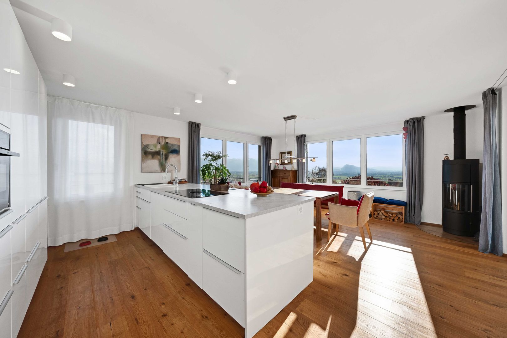 • Komfortabel ausgestattete Küche des Hauptwohnbereichs mit Quooker, Backofen, Steamer und Bora-Dampfabzug