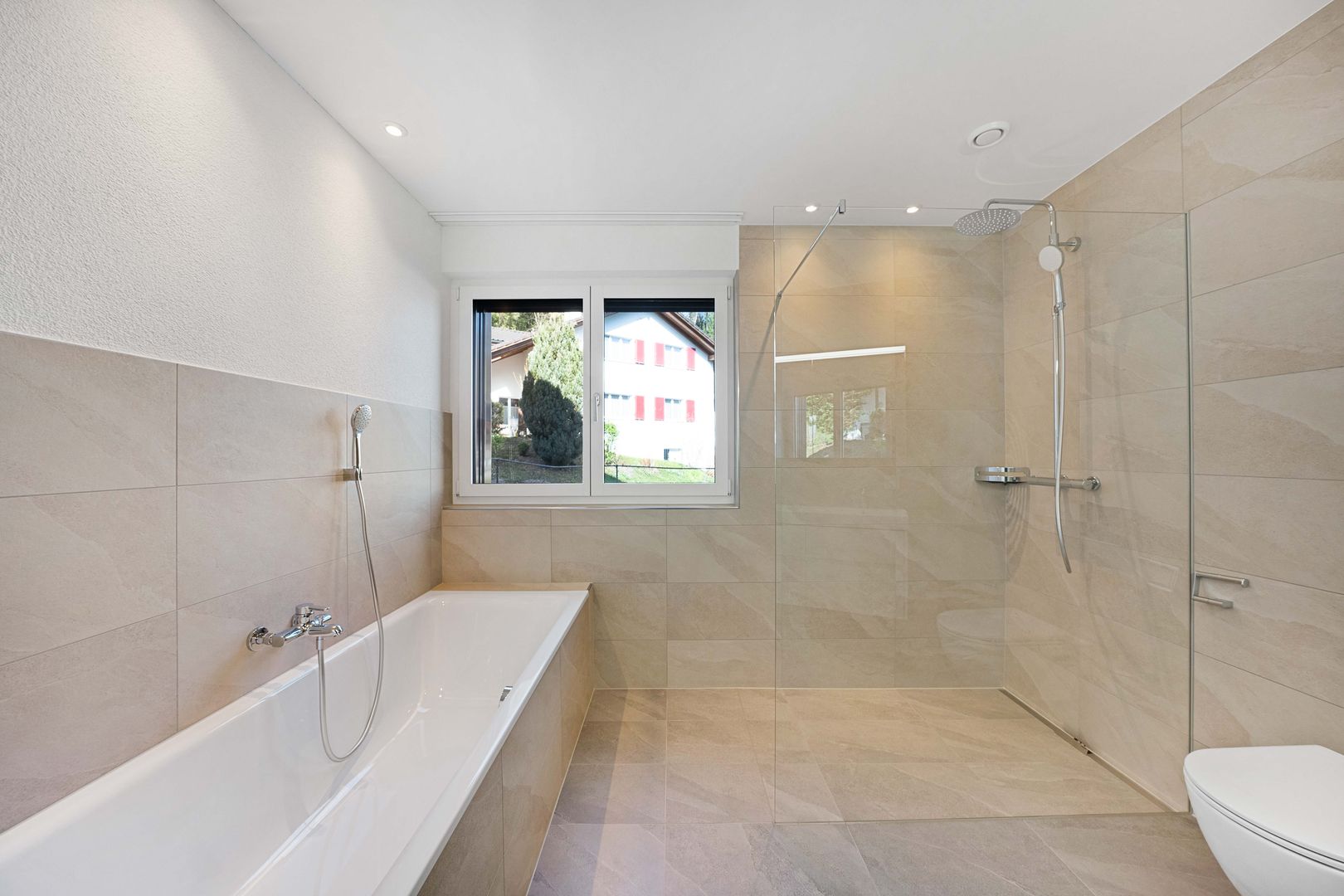 • modernes Badezimmer mit Badewanne und Dusche