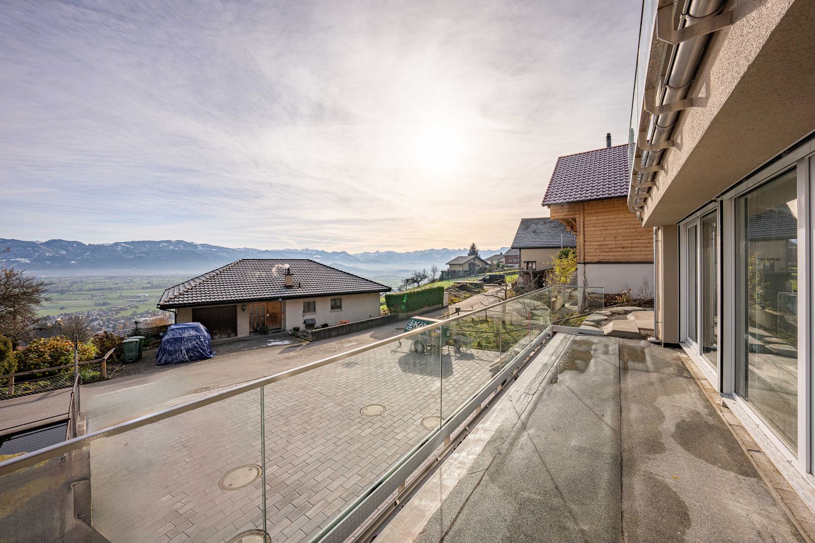 • Grossteils unverbaubare, traumhafte Aussicht über das Rheintal und die umliegende Berglandschaft