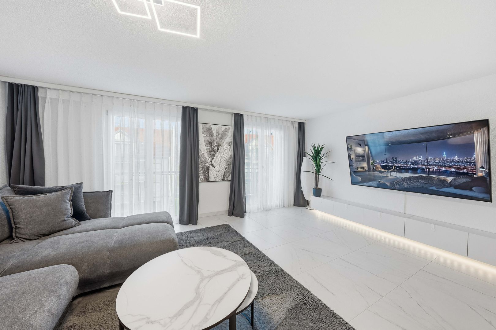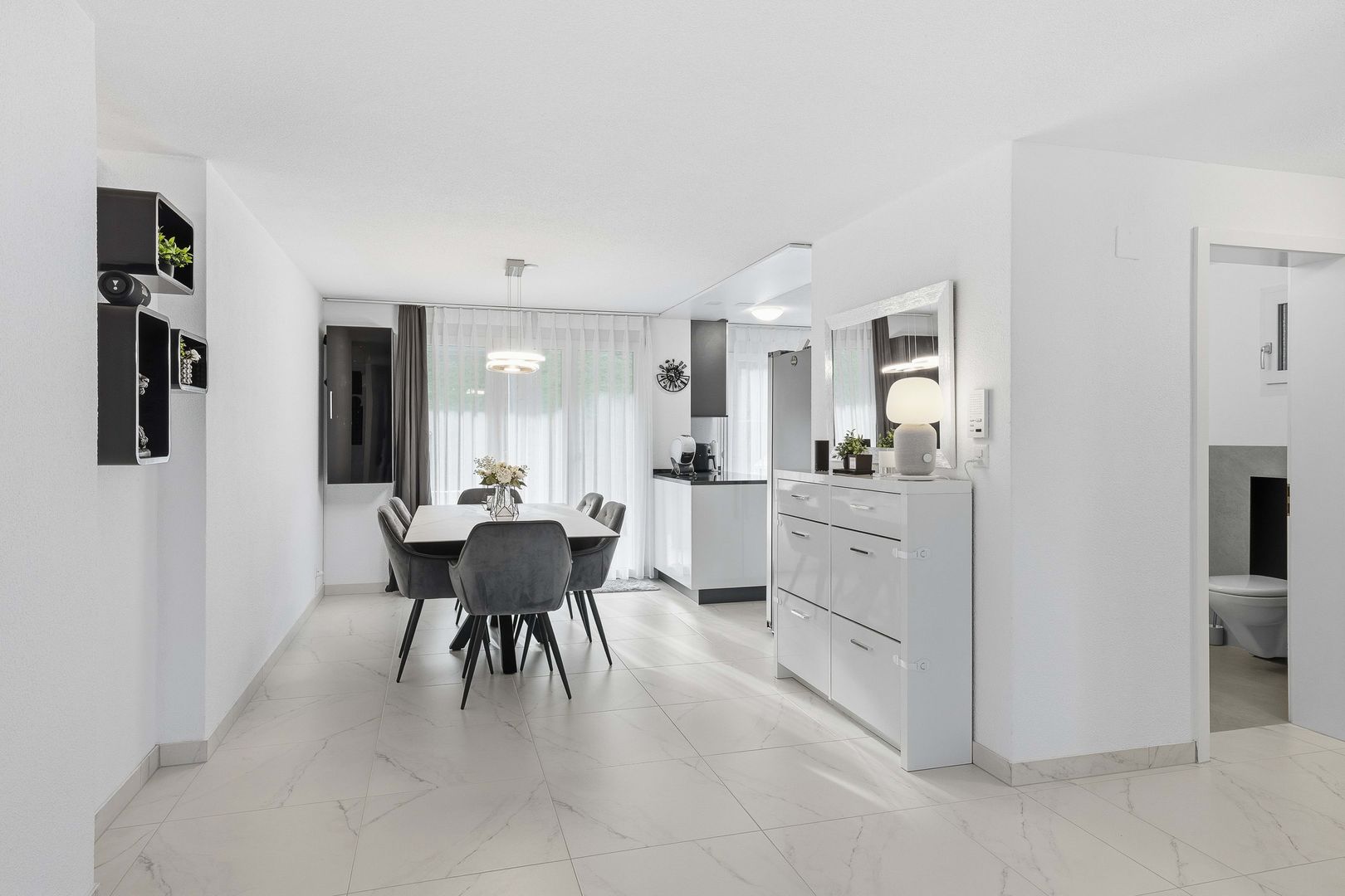 - Offener Wohn-, Ess- und Kochbereich mit direktem Balkon und Gartenzugang
